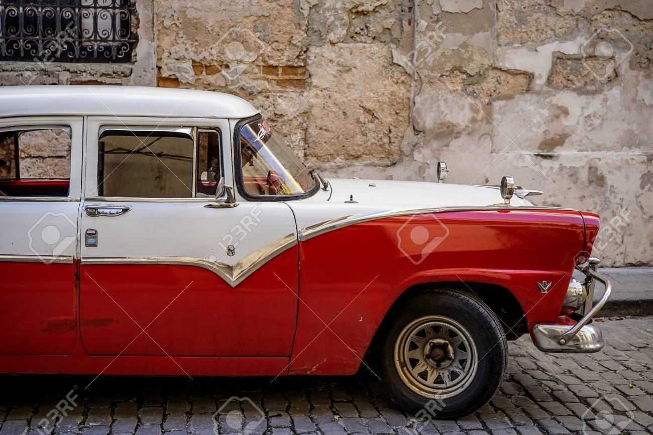 Photo D Une Voiture Americaine Rouge Dans Les Rues De Cuba Images