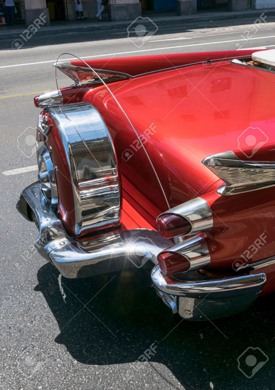 Vue Arriere D Un Rouge Classique Voiture Americaine A Cuba Banque D
