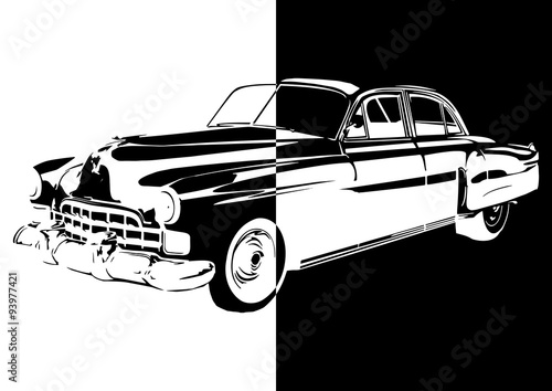 Voiture Americaine Retro En Noir Et En Blanc Fichier Vectoriel