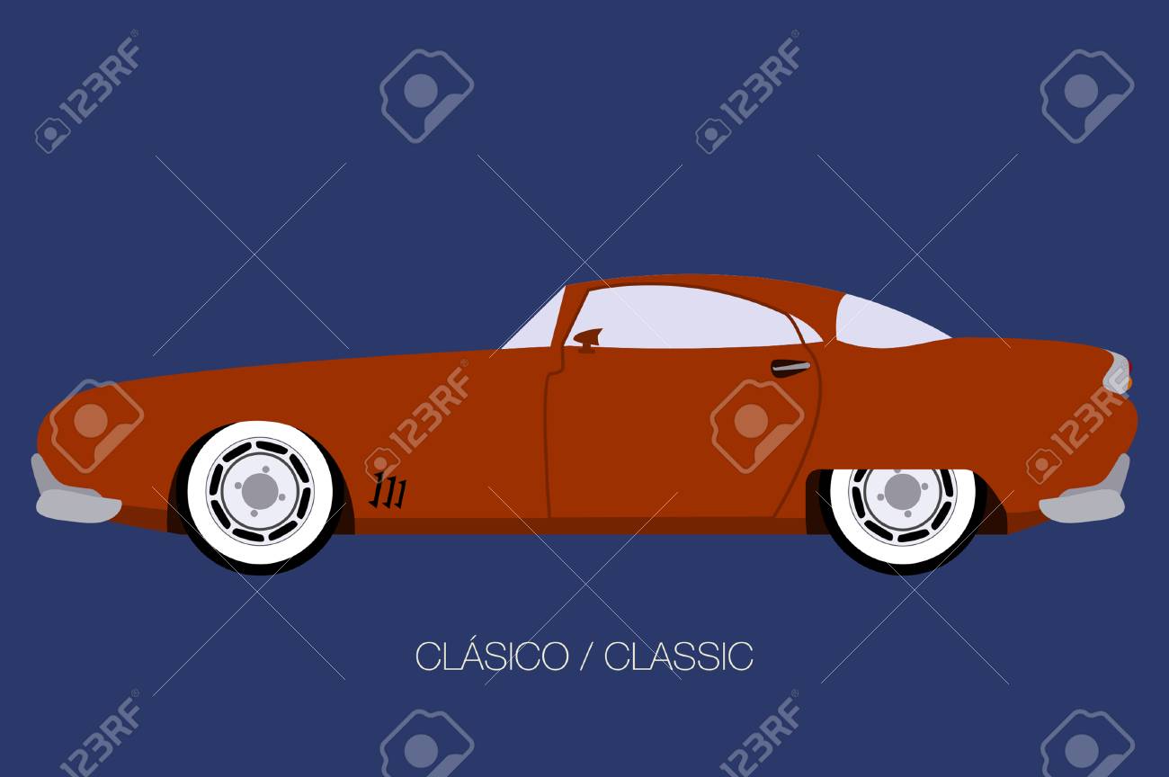 Voiture Americaine Classique Vue Laterale Style Design Plat Clip