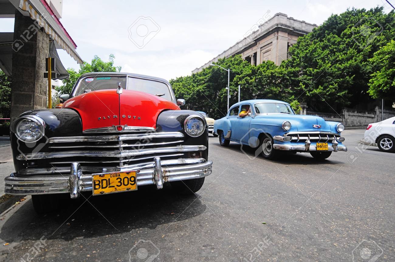 Vieille Voiture Americaine Sur La Belle Rue De La Havane Cuba Photo